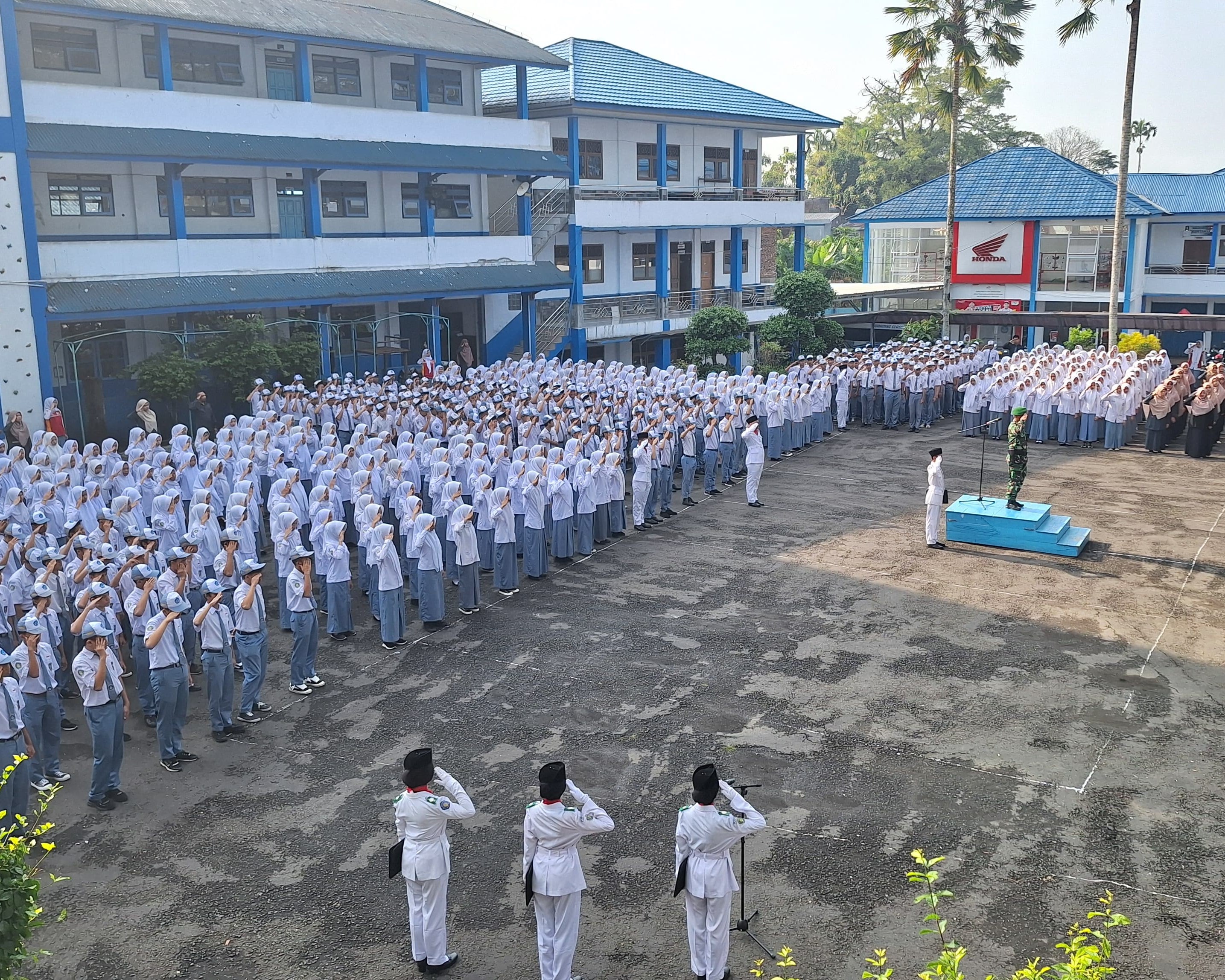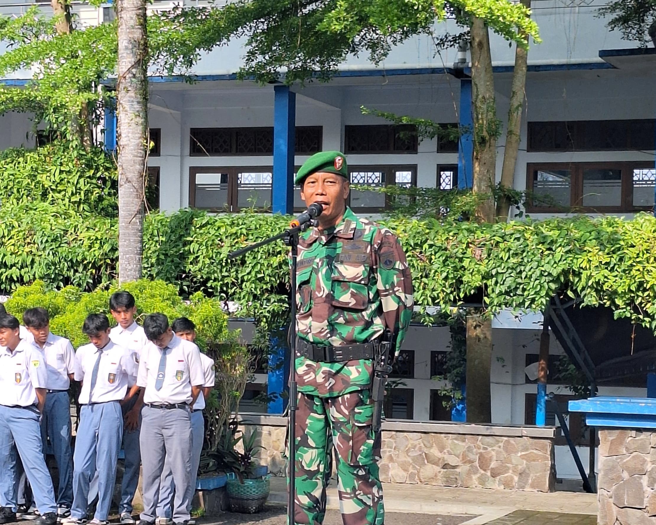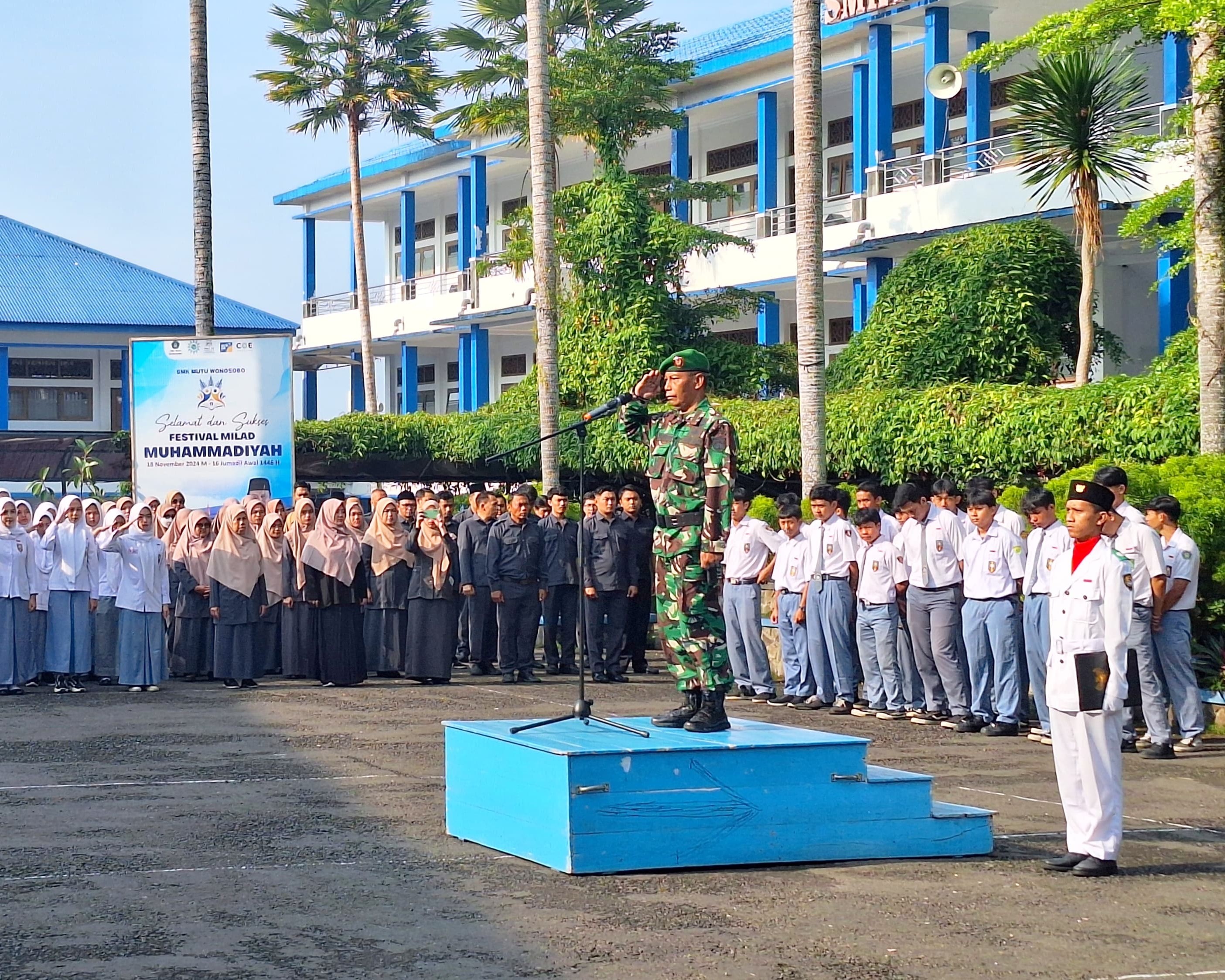 Upacara Peringatan Hari Pahlawan di SMK Mutu Wonosobo dengan Danramil 01/Wonosobo Kapten Inf Purwantoro yang menjadi Pembina Upacara
