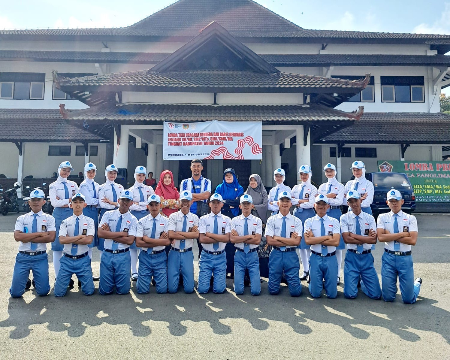 Paskibra Paska Persada SMK Mutu Wonsobo dalam Ajang Lomba PBB-TUB di Halaman Gedung Adipura Wonosobo dalam Rangka Memperingati HUT TNI Ke-79